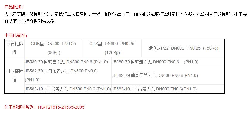 注:由于化工部標準人孔的筒節都比較薄,一般都要加厚,在選型、訂貨是注明。