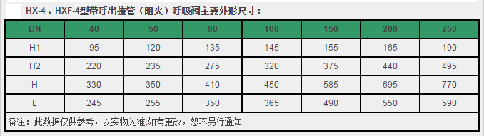 HX4帶呼出接管呼吸閥是裝在室內固定儲罐頂上的接管呼吸作用,它能對石油儲罐內外壓差進行自動調節。其性能可靠、穩定,完全符合石油工業部SY7511-87部標準。
